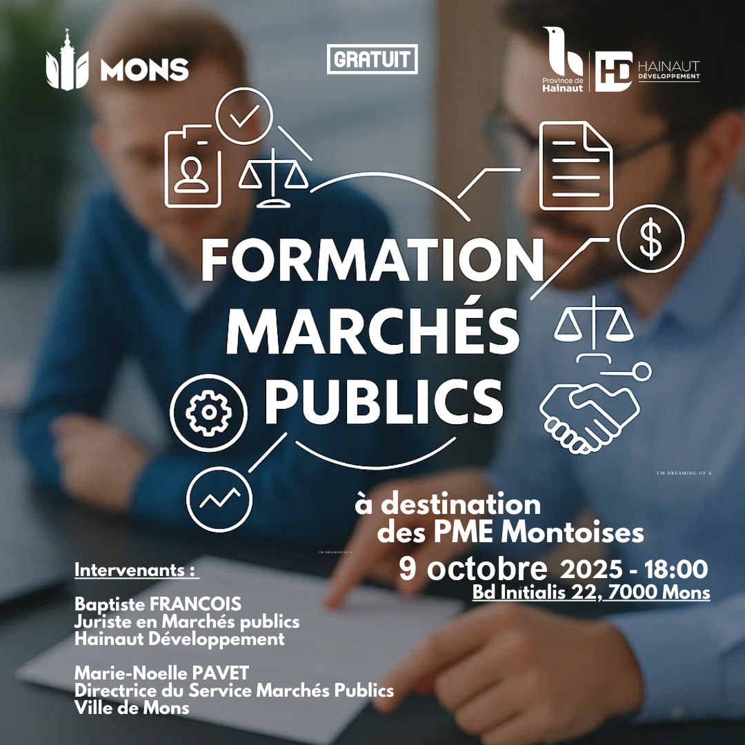 Participez à notre atelier sur les marchés publics organisé en coopération avec la Ville de Mons et Hainaut Développement.