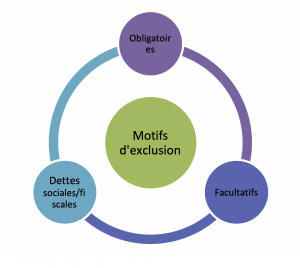 - Les motifs d’exclusion: l’opérateur économique a-t-il fait l’objet de condamnations graves? A-t-il des dettes sociales/fiscales? Est- il en faillite ou a-t-il commis une faute professionnelle?